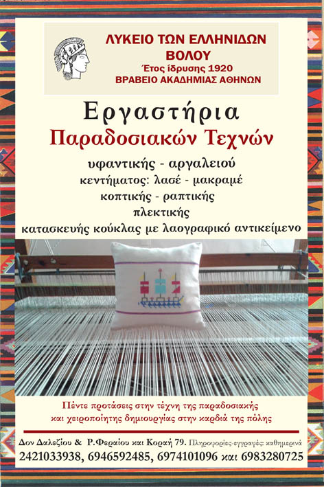 Ξεκινούν οι εγγραφές των πέντε εργαστηρίων παραδοσιακών τεχνών-πέντε αντίστοιχων προτάσεων του Λυκείου των Ελληνίδων Βόλου