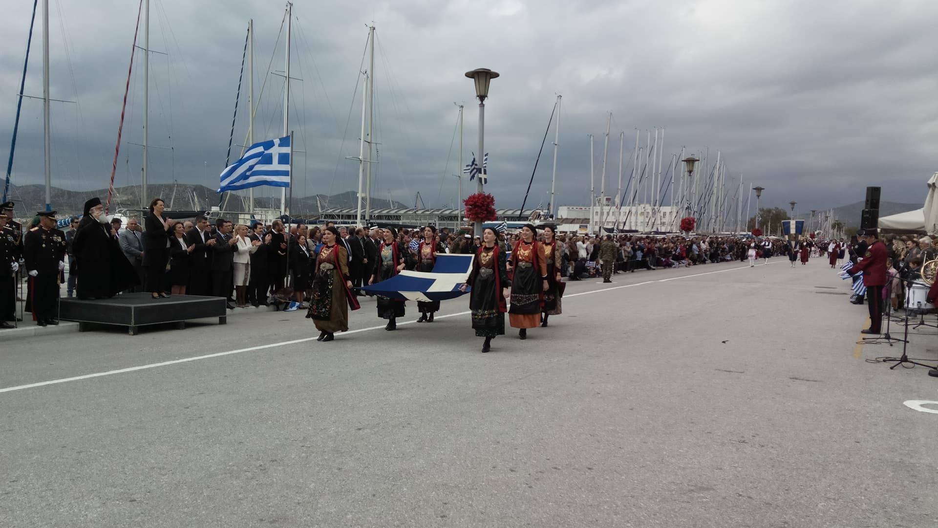 Μ’ ένα γκρίζο φθινοπωρινό καιρό έγινε η σημερινή παρέλαση στο Βόλο με πλήρη παρουσία των τμημάτων της. Οι έξι κοπέλες του Λυκείου μας, που κρατούν καμαρωτές και πανέμορφες τη ΣΗΜΑΙΑ ΜΑΣ-ντυμένες με την παραδοσιακή φορεσιά του Ζαγορίου Ηπείρου, χαμογελούν εισπράττοντας θερμά χειροκροτήματα από το πλήθος κόσμου που συνέρρευσαν στην παραλία.