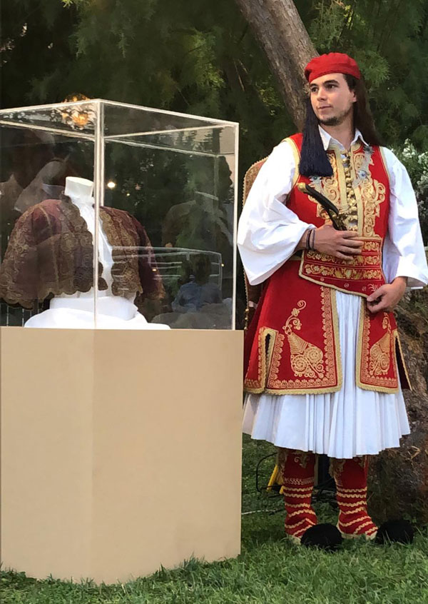 Την εντύπωση κέρδισε το εκτιθέμενο σε ειδική προθήκη χρυσοκέντητο ζακέτο (ζιπούνι) το οποίο ανήκει στη συλλογή του Λ.Ε.Β., προερχόμενο από την προ ετών δωρεά της Ιφιγένειας Γυφτογιάννη-Τσοχαντάρη, και που κατά την κληρονομημένη προφορική παράδοση της οικογένειάς της, ανήκε στην πρόγονό τους Τασούλα Γυφτογιάννη. Το εξαίρετο αυτό απόκτημα αποτέλεσε το έναυσμα γι’ αυτή την ερευνητική περιπλάνηση. Το λυκειακό στίγμα έδωσε εξίσου και η εντυπωσιακή φορεσιά του αρματωμένου -ως σύμβολο του έπους του Μεσολογγίου- που τη ζωντάνεψε φορώντας την ο χορευτής του Λ.Ε.Β. Βαγγέλης Παλιούρας• ένα έργο τέχνης του ελληνοράπτη Νίκου Πλακίδα από το Μεσολόγγι.