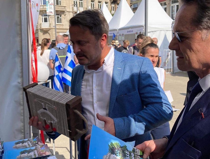 Το ελληνικό περίπτερο, το οποίο εκπροσωπούσε η Ελληνική Πρεσβεία μαζί με την Ελληνική Κοινότητα Λουξεμβούργου στην οποία γραμματέας είναι η βολιώτισσα Ιωάννα Κ. Τόπα, επισκέφτηκε ο Henri, Μεγάλος Δούκας του Λουξεμβούργου, και ο Xavier Bettel, ο Πρωθυπουργός του Λουξεμβούργου, μαζί με τους Υπουργούς Τουρισμού και Παιδείας. Στον πρωθυπουργό του Λουξεμβούργου, που είναι φιλέλληνας, επισκέπτεται αρκετά συχνά την Ελλάδα και έκανε σπουδές erasmus στο Αριστοτέλειο Πανεπιστήμιο της Θεσσαλονίκης, άρεσε πολύ το τελαράκι, σαν αυτά που υφάνθηκαν πρόσφατα στα Εργαστήρια Παραδοσιακών Τεχνών με αφορμή την επετειακή μας έκθεση των πιάτων, στην Εξωραϊστική.