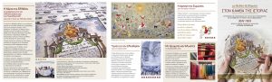 Η Μαρία Γαλανάκη κέντησε την Αρπαγή της Ευρώπης στα αχνάρια των παραδοσιακών κρητικών κεντημάτων, όπου ιστορεί τον μύθο της απαγωγής της Ευρώπης και της μεταφοράς της από τον Δία στην Κρήτη. Η Σοφία Μελά κέντησε την παρτιτούρα από τις δύο πρώτες στροφές του «Ύμνου εις την Ελευθερίαν» του Διονυσίου Σολωμού, ένα περιστέρι και φύλλα δάφνης. Τέλος. η Μελισσάνθη Σπέη με Χρώματα και «Κλωστές Πεταλούδα» καλεί μικρούς και μεγάλους να αγγίξουν και να χαρούν τα υλικά της κεντητικής.